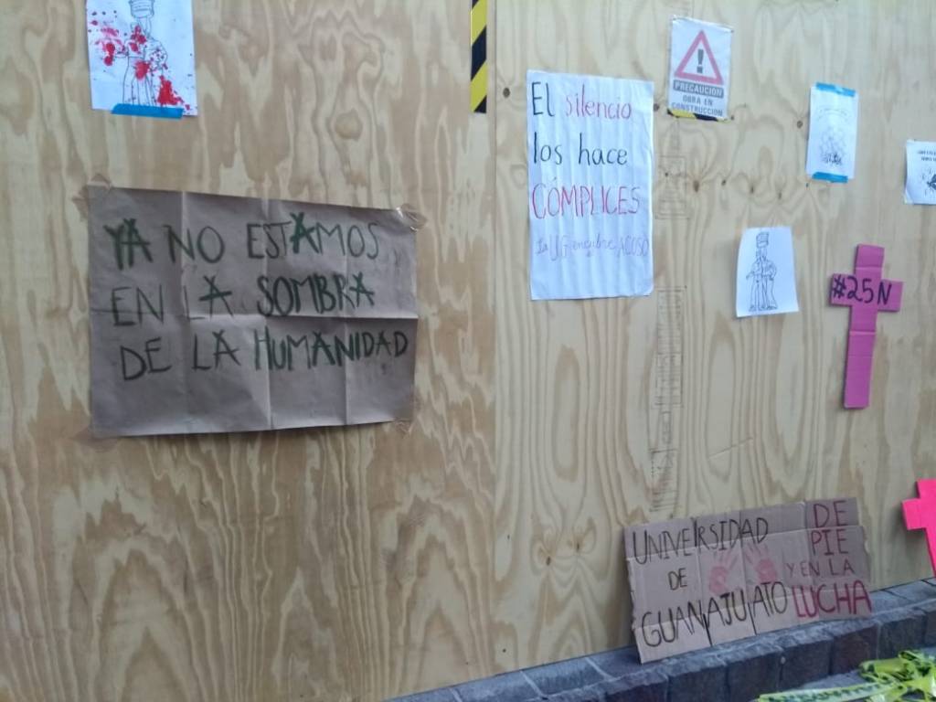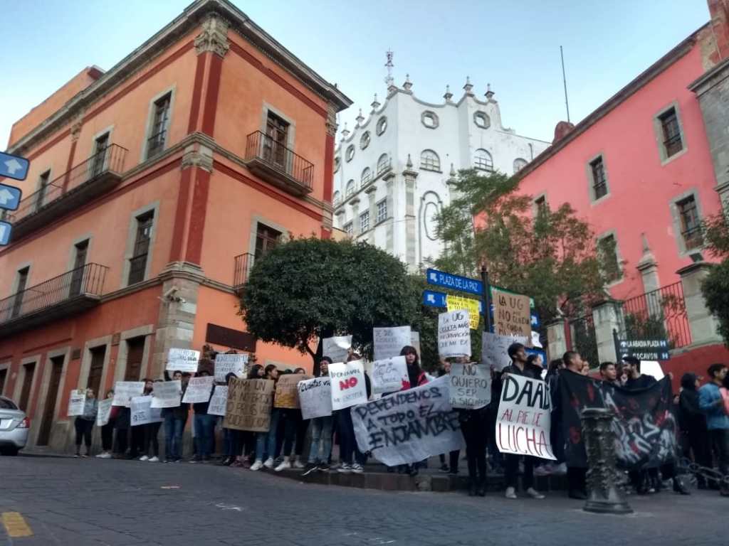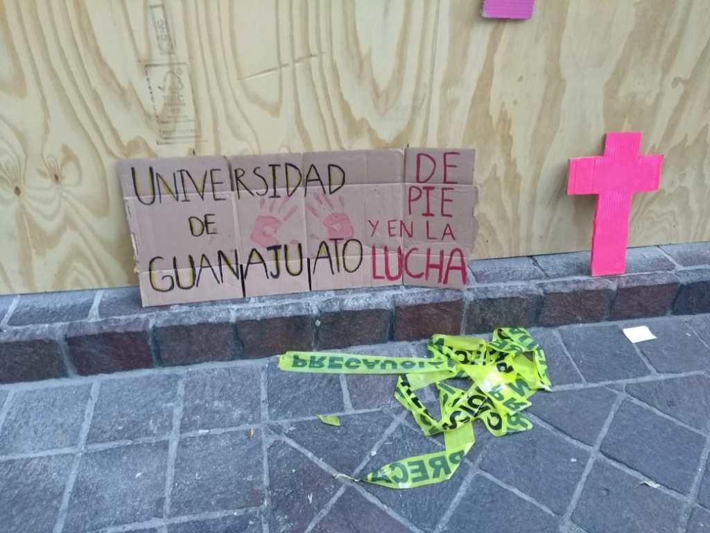 Fue aproximadamente a las 5:30 de la mañana de este miércoles cuando más de un centenar de los estudiantes comenzaron a llegar a la calle Lascuráin de Retana y se instalaron frente al edificio central de la Universidad de Guanajuato en donde colocaron algunas pancartas y mantas exigiendo seguridad y justicia.