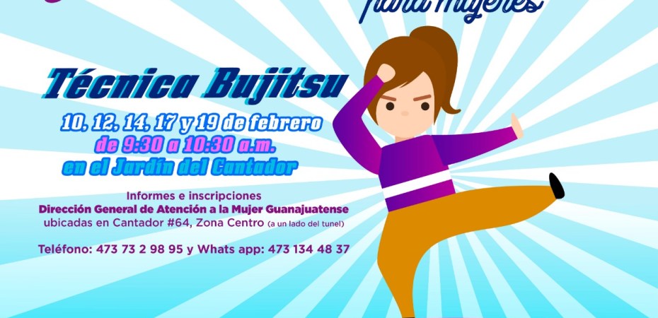 Guanajuato, Gto. Tomando como base la técnica marcial bujutsu, la Dirección General de Atención a la Mujer Guanajuatense ofrece un curso gratuito e intensivo de defensa personal.