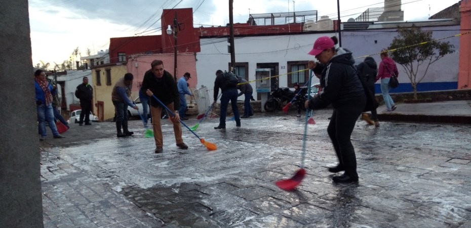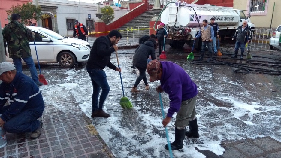 La brigada municipal de los martes también borró graffitis y remozó las jardineras ubicadas en las inmediaciones del templo, entre otras acciones en las que participaron más de 100 familias de Peñasco, Calicanto, San Isidro, San Pablo, Santa Fe, Escalones de Cortés, Sepultura, Callejón Oscuro y la Plaza de Guadalupe.