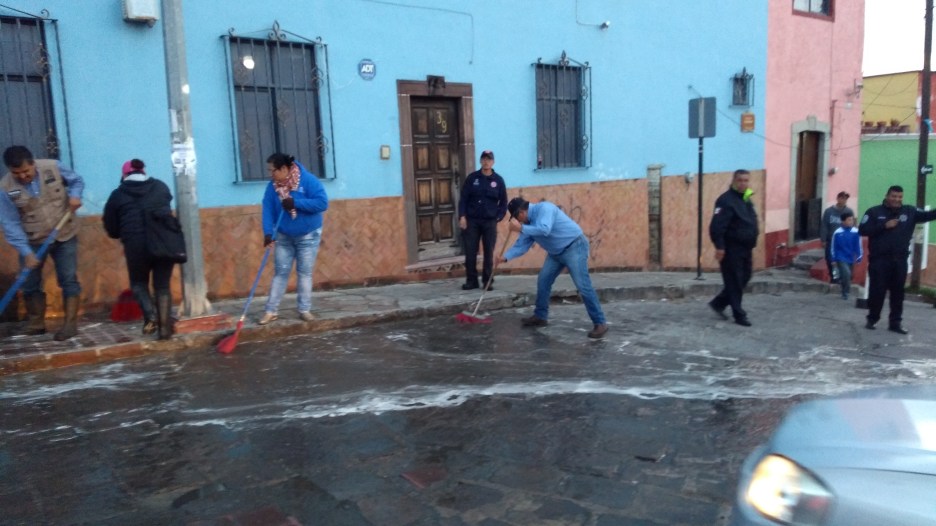 Guanajuato, Gto. La brigada que cada martes encabeza el alcalde Alejandro Navarro llegó a la Calzada de Guadalupe para lavar y bachear calles aledañas, pintar fachadas, restituir luminarias, remarcar guarniciones, renovar la señalética vial e instalar alarmas vecinales de 130 decibeles.