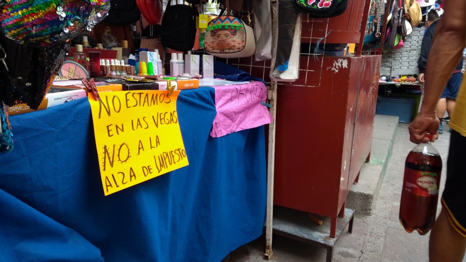 Cabe señalar qué esta manera de manifestación por parte de los comerciantes se llevó acabo sin que afectará sus actividades, que son atender a quienes acuden a realizar sus compras, e incluso sin hacer «ruido» o alboroto, únicamente las frases escritas.