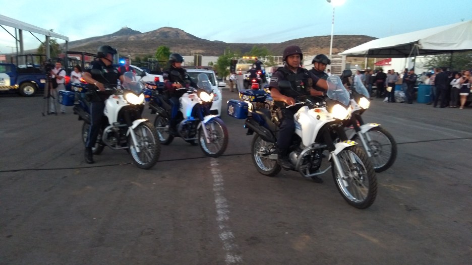 Guanajuato Gto. La Secretaría de Seguridad Ciudadana de Guanajuato Capital cuenta con 5 motocicletas más, mismas que fueron entregadas por gobierno del estado al concluir la VII Sesión Ordinaria del Consejo Estatal de Seguridad Pública, la cual se llevó a cabo en el parque Guanajuato Bicentenario, sumando así siete de este tipo de unidades las recibidas en los últimos meses a fin de fortalecer a la corporación en su labor de prevenir hechos que rompan con la tranquilidad los ciudadanos mantener la seguridad en la capital afirmó Alejandro Navarro Saldaña presidente municipal.