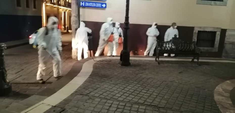 Por instrucciones del alcalde Alejandro Navarro y de acuerdo con los disposiciones emitidas por el Consejo Municipal de Protección Civil para mitigar los riesgos que implica la pandemia por coronavirus COVID-19, la brigada especializada dispersó la fórmula desinfectante en la Plaza de la Paz, el jardín Unión, la calle Sopeña, así como las calles Constancia y Alonso, diversos tramos de la Calle Subterránea, el mirador del Pípila y los mercados Embajadoras, Gavira e Hidalgo, entre otros espacios públicos.