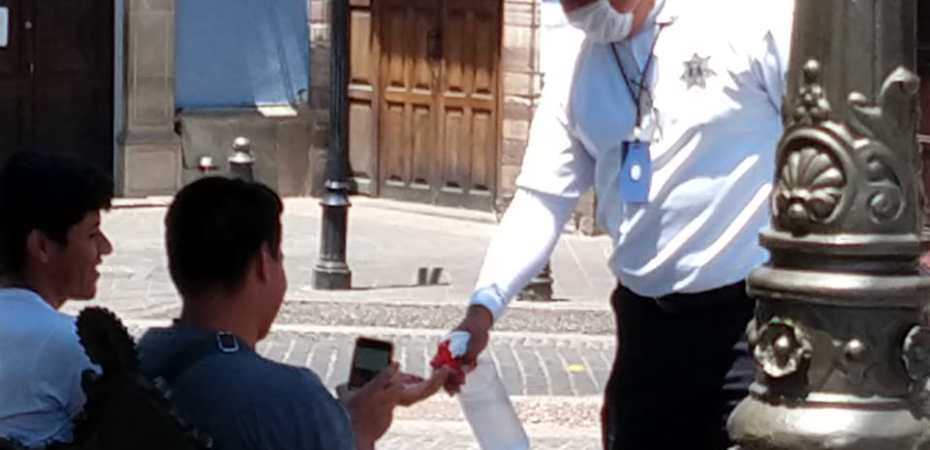 La aplicación de gel antibacterial se realiza con mayor frecuencia en los principales paraderos de transporte público que son en los que hay mayor afluencia de personas como el de la Plaza Juárez y el de la Ex Estación del Ferrocarril, de donde también entran y salen rutas suburbanas.