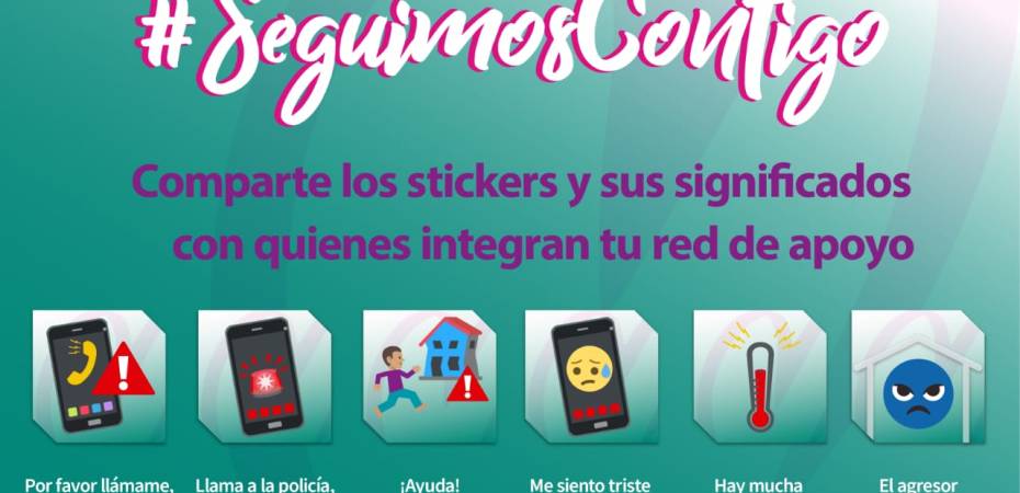 En el paquete que la Dirección General de Atención a las Mujeres ha puesto a disposición de las redes de apoyo y de la ciudadanía en general se encuentran, por ejemplo, los stickers de auxilio que representan las solicitudes “Llámame por favor, es urgente”, “Llama a la Policía, estoy en peligro” y “¡Ayuda!, ven a mi casa”, entre otros que ilustran situaciones conflictivas a las que una mujer puede enfrentarse.