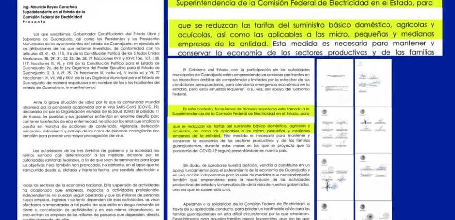 Sinhue Rodríguez Vallejo, solicitó a la Comisión Federal de Electricidad (CFE) la reducción