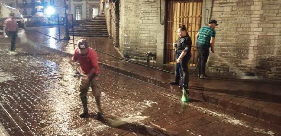 Guanajuato, Gto. Ante la entrada de la fase 3 de la emergencia sanitaria por el coronavirus COVID-19, la Presidencia Municipal anunció que se incrementan los lavados nocturnos de las calles, plazas y zonas de uso común en la ciudad de Guanajuato.