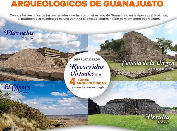 Al ingresar a http://guanajuato.mx/experiencias/4/12 los usuarios descubrirán Cañada de la Virgen, en San Miguel de Allende; Peralta, en Abasolo; El Cóporo, en Ocampo; y Plazuelas, en Pénjamo. La Zona Arqueológica de Arroyo Seco, en Victoria, se prepara para que pronto vivas la experiencia en este lugar.