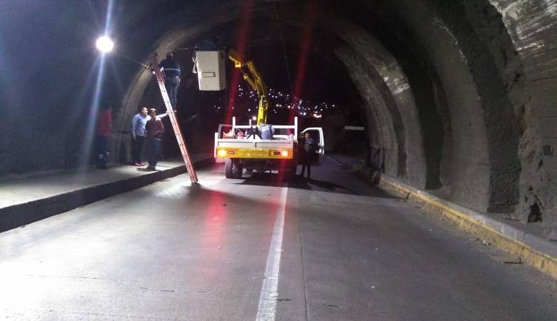 En los túneles “La Iglesia” y “Las Enredaderas”, que conectan la periferia con el centro de esta Ciudad Patrimonio, la Dirección General de Servicios Públicos aprovechó la disminución del tráfico vehicular por la pandemia del coronavirus COVID-19 para instalar el nuevo sistema de alumbrado.