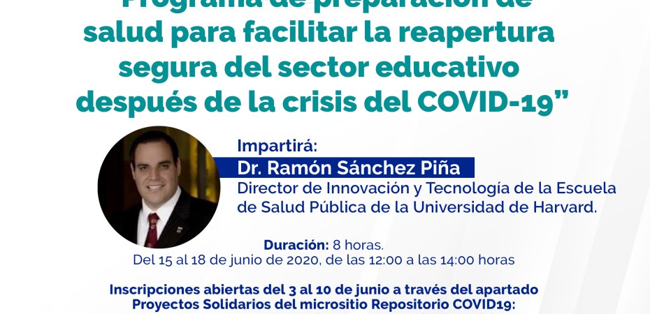 En el curso impartido por el Dr. Sánchez Piña se revisarán -entre otros temas- las vulnerabilidades de salud de los sistemas educativos actuales ante la reapertura de las escuelas, la cual se llevará a cabo cuando disminuya el ritmo de infección del COVID-19.
