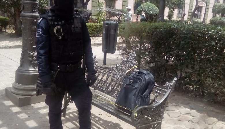 A las 13:15 horas de este jueves un hombre y una mujer de 22 años de edad le reportaron a dos elementos de la policía preventiva que habían encontrado una mochila negra en una de las bancas de Jardín Reforma.