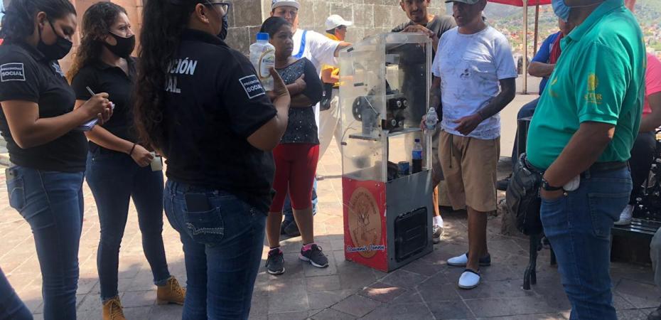 Guanajuato, Gto., La Secretaría de Seguridad Ciudadana, a través de la coordinación de Prevención Social de la Violencia y la Delincuencia, realizó diversos recorridos de acercamiento para promover el uso de cubrebocas y seguir reforzando las medidas de prevención primarias de salud respecto al coronavirus COVID-19, con personas que laboran como promotores y guías de turistas en la vía pública o casetas de información turística en puntos como el Pípila, Plazuela de los Ángeles, Plaza de la Paz, Plaza Allende y Mercado Hidalgo, entre otras.