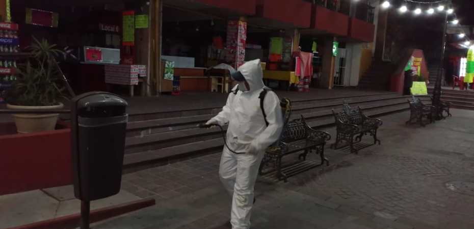 Desde el inicio de la emergencia sanitaria por los contagios del coronavirus COVID-19, la Presidencia Municipal implementa estos operativos especiales con los que se desinfectan bancas, postes, barandales, bolardos, paraderos de transporte público y todo el mobiliario urbano de mayor uso común.