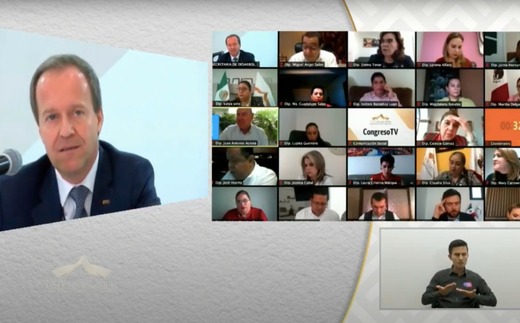 Guanajuato, Gto.- En seguimiento a las mesas de trabajo con dependencias estatales para el análisis del estado que guarda la administración pública estatal y los temas de su competencia relacionados con la contingencia sanitaria generada por la COVID-19, las diputadas y los diputados sostuvieron una reunión virtual con el titular de la Secretaría de Desarrollo Económico Sustentable, Mauricio Usabiaga Díaz Barriga.