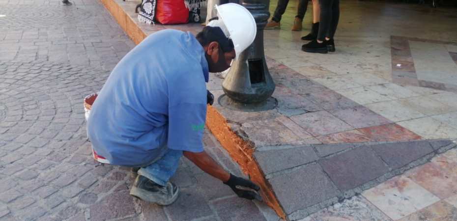 Guanajuato, Gto., – Personal de la Dirección General de Servicios Públicos realizó un operativo especial para retirar chicles pegados en el piso del Jardín Unión y sus alrededores. En total se retiró alrededor de dos kilogramos de goma de mascar pegada en el piso y los adoquines de esta importante zona del centro histórico de Guanajuato Capital. Además del retiro de la goma de mascar, también se realizó una jornada integral de mantenimiento en el jardín que incluyó la rehabilitación de jardineras, macetones y repintado de peraltes en uno de los principales puntos de encuentro social en la Capital del Estado. De igual forma, la dependencia municipal solicitó la colaboración de los ciudadanos para depositar en los contenedores de mano las gomas de mascar y evitar que se peguen en el piso y en los adoquines, lo que además de dar una mala imagen al lugar genera insalubridad.