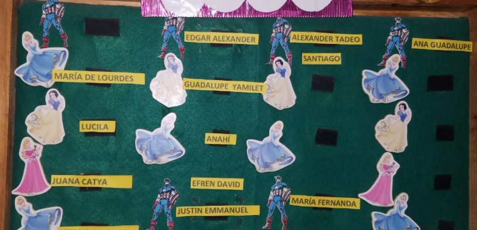 su hogar, una lista donde registrará la asistencia y objetos para que los estudiantes