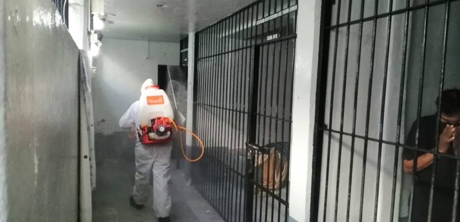 Guanajuato, Gto., .- Con el objetivo de reforzar la prevención en materia de salud de las personas que trabajan en la Secretaría de Seguridad Ciudadana de Guanajuato Capital, la Brigada de Sanitización realizó una jornada de desinfección en las instalaciones de la Comisaría de la Policía Preventiva.