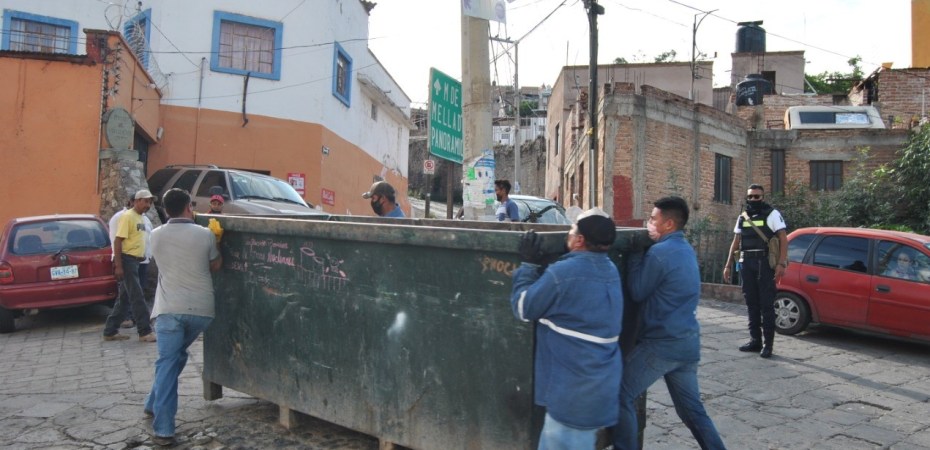 Guanajuato, Gto., Personal de la Dirección General de Servicios Públicos reubicó el contenedor de basura de San Luisito, en la subida a Mineral de Mellado, para evitar que se contamine el río que pasa por el lugar. También se aprovechará el espacio para usarlo como paradero de transporte público.