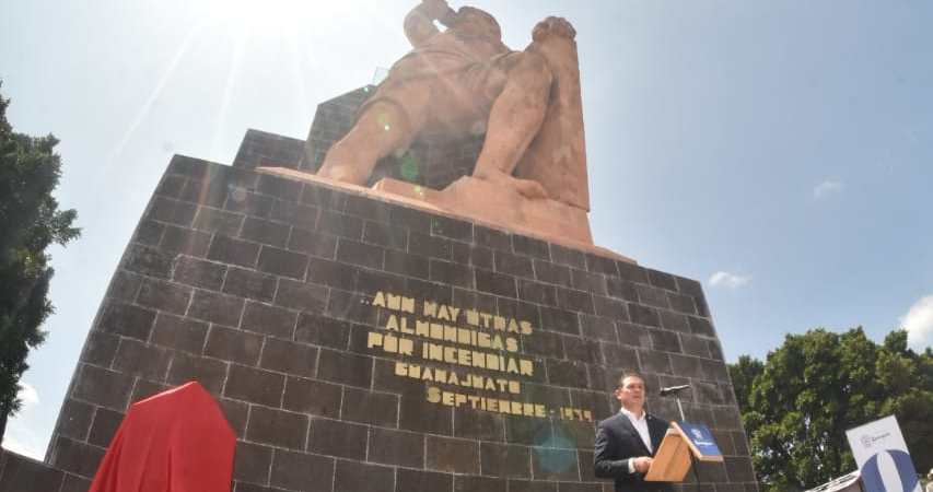 Guanajuato, Gto., – La imagen de la mega escultura del Pípila de la ciudad de Guanajuato quedó plasmada en un «cachito» conmemorativo de la Lotería Nacional para la Asistencia Pública. El Alcalde Alejandro Navarro Saldaña y el Director General de la Lotería Nacional, Ernesto Priero Ortega, develaron el billete de lotería en la base de la escultura, que este año cumple ocho décadas de coronar a la ciudad de Guanajuato desde el mirador del Cerro de San Miguel. «Quiero agradecer a la Lotería Nacional para la Asistencia Pública que haya elegido este representativo lugar de nuestra ciudad como imagen de su boleto. La figura del Pípila representa a Juan José de los Reyes Martínez Amaro, un histórico personaje que tuvo participación en la Toma de la Alhóndiga de Granaditas», dijo el Alcalde Navarro. El Presidente Municipal agregó que El Pípila es parte del patrimonio historico y cultural de esta Ciudad Patrimonio Cultural de la Humanidad. El Sorteo Superior se realizará este viernes con 51 millones de pesos en premios y un premio mayor de 17 millones en dos series. Cada cachito tiene un costo de 40 pesos. La escultura del Pípila es obra del artista plástico Juan Fernando Olaguíbel, quien le presentó el proyecto el 7 de marzo de 1939 al entonces Presidente de México, Lázaro Cárdenas. La obra quedó concluida en 5 de febrero de 1940.