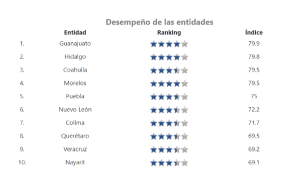 En el ranking de los estados Guanajuato ocupa la punta con 79.9 puntos, le sigue