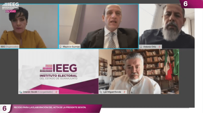 La sesión de esta comisión fue encabezada por el Consejero Presidente del IEEG, Mauricio Enrique Guzmán Yáñez; participaron los Consejeros Electorales, Luis Miguel Rionda Ramírez y Antonio Ortiz Hernández; así como la Secretaria Ejecutiva, Bárbara Teresa Navarro García.