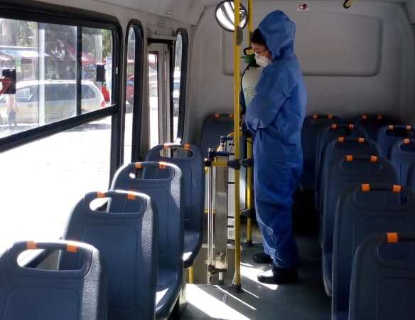 Guanajuato, Gto., .- La Brigada Sanitizante de Guanajuato Capital continúa con el trabajo de desinfección de los camiones del transporte público como medida de prevención sanitaria permanente. El Director General de Tránsito, Movilidad y Transporte, Luis Rivera Almanza, explicó que la sanitizacion se hace diario principalmente en los paraderos del término de rutas donde se aprovecha que hay menos usuarios en las unidades. «Desde el inicio de la pandemia hemos estado llevando a cabo estas acciones en favor de la ciudadanía y de los usuarios del transporte público urbano y suburbano», explicó el funcionario y dijo que también se solicita el uso de cubrebocas a las personas arriba de las unidades. El liquido sanitizante que se utiliza en los camiones no es tóxico ni mancha la ropa. Se aplica en barandales y asientos que son las superficies que más utilizan los usuarios. Rivera Almanza agregó que también se pide a los operadores que utilicen el cubrebocas como parte de las medidas que se implementan para mitigar la propagación del coronavirus COVID-19 en el transporte público guanajuatense.