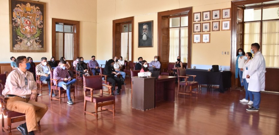 Guanajuato, Gto., .- Personal del Consultorio Médico Gratuito de la Presidencia Municipal de Guanajuato ofreció una capacitación de actualización a las y los funcionarios de distintas dependencias sobre las medidas de prevención del coronavirus COVID-19. En la capacitación estuvo presente el Alcalde Alejandro Navarro Saldaña, directoras, directores y personas encargadas del manejo del personal municipal. Las capacitaciones de actualización son parte de las medidas con las que la Presidencia Municipal de Guanajuato refuerza la prevención de contagios en la Capital del Estado. «Tenemos un consultorio municipal con médicos certificados para atender a los que trabajamos aquí y a la ciudadanía en general», recordó Navarro Saldaña quien agradeció al equipo del consultorio por las capacitaciones de actualización que se desarrollan en manera virtual y presencial con todas las medidas. Con la finalidad de reforzar el trabajo de autocuidado y apoyo a las trabajadoras y trabajadores en riesgo, los médicos municipales recordaron las medidas y protocolos para el manejo del personal, sobre todo aquél que tiene mayor contacto con la ciudadanía. En la capacitación el personal médico recordó el uso correcto del cubrebocas, la detección y el manejo de casos sospechosos, así como las medidas generales para prevenir contagios en el ámbito laboral. También se insistió en que durante la pandemia cualquier síntoma de resfriado representa un caso sospechoso que debe ser tratado y recordaron la necesidad de mantener trabajando en casa a mujeres embarazadas, personas con diabetes o cáncer y mayores de 60 años. Para cualquier duda se puede llamar al Consultorio Médico Gratuito en el número 473 102 24 00 extensiones 2903 y 2905 de lunes a viernes entre las 9:00 de la mañana y las 4:00 de la tarde sin costo para la población en general.
