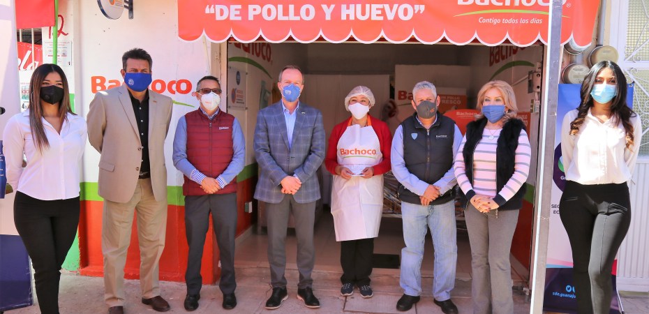 Celaya, Gto, La Secretaría de Desarrollo Económico Sustentable (SDES) y la empresa Bachoco inauguraron el primer punto de venta de huevo y pollo fresco de 20, con este lanzamiento inician operaciones de manera simultánea en el estado como parte del programa “guías empresariales” en apoyo a emprendedores para la apertura puntos de venta de productos Bachoco con apoyo de equipamiento y capacitación.