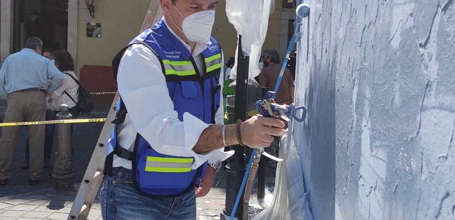 Guanajuato, Gto., .- Con una coinversión de 4 millones de pesos la Presidencia Municipal de Guanajuato cumplió la meta anual de pintar mil fachadas para regresarle el color y el esplendor a la Capital del Estado. El Presidente Municipal, Alejandro Navarro Saldaña, explicó que con un esquema de peso a peso con Gobierno del Estado se han intervenido 100 mil metros cuadrados de fachadas en el Centro Histórico, callejones, barrios, en la zona sur y las comunidades rurales. «Andamos pintando todo Guanajuato», aseguró el Presidente Municipal durante la supervisión del programa en la Avenida Juárez, como parte de las actividades de esta semana en la zona centro. Navarro Saldaña explicó que este trabajo se realiza a través del programa llamado Mi Colonia a Color, que se implementa con la concurrencia de recursos entre la Presidencia Municipal y la Secretaría de Desarrollo Social y Humano de Gobierno del Estado. «Un lugar con alumbrado público que funcione, que la gente le dé uso, que esté pintado y que esté bonito es un lugar seguro y es lo que hacemos con este programa de pintado de fachadas», dijo al agradecer a la administración estatal por el apoyo para la Capital del Estado