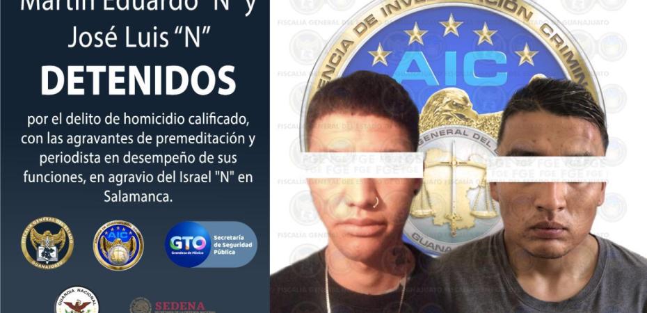 Guanajuato,Gto. La Fiscalía General del Estado esclarece el homicidio del periodista Israel “N” y en operación coordinada con @SeguridadGto@SEDENAmx@GN_MEXICO_ concreta la detención de los inculpados en el crimen atroz registrado el pasado 9 de noviembre en Salamanca.