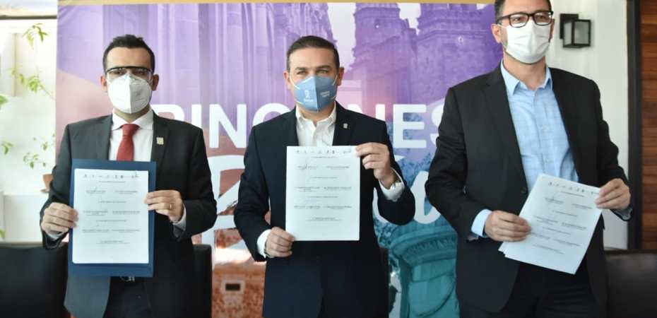 Guanajuato, Gto., Con el objetivo de generar un corredor colonial único en México y reactivar la economía de la región, las ciudades de Guanajuato, San Luis Potosí y Zacatecas establecieron un convenio de colaboración para crear un nuevo producto turístico llamado «Rincones del Bajío». Reunidos en la ciudad de Guanajuato, los Presidente Municipales de las tres ciudades firmaron el documento con el que se formaliza la nueva relación turística con la que se busca posicionar a estos destinos coloniales como los mejores del País. «Hoy es el momento de seguir trabajando por la reactivación económica y con total seguridad, unidos con San Luis Potosí y con Zacatecas seremos sin duda mucho más fuertes», aseguró Alejandro Navarro Saldaña, Presidente Municipal de Guanajuato, quién recordó que el patrimonio de las tres ciudades es reconocido por la UNESCO. Por su parte, el Presidente Municipal de Zacatecas, Ulises Mejía Haro, destacó la cercanía geográfica entre los tres destinos lo que aporta seguridad para los visitantes que se trasladan por tierra, ya que las distancias entre estas ciudades son de menos de tres horas. En tanto, el Presidente Municipal de San Luis Potosí, Alfredo Lujambio Cataño, explicó que bajo la nueva normalidad se deben replantear las formas para la difusión turística con alianzas estratégicas como la que representa «Rincones del Bajío». Navarro Saldaña también recordó que el 10 de diciembre rendirá protesta como Presidente de la Asociación Nacional de Ciudades Mexicanas del Patrimonio Mundial, en la que «Rincones del Bajío» seguramente será ejemplo de unidad entre las ciudades históricas de México.