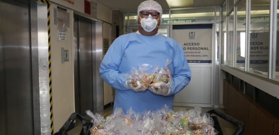 Guanajuato, Gto Con tan sólo 10 meses de antigüedad en el IMSS y nueve de laborar en el Hospital General de Zona (HGZ) No. 29 “Dr. Belisario Domínguez”; Omar Antonio, manejador de alimentos, proporciona estas provisiones a pacientes COVID-19 con mucho entusiasmo, además de brindarles momentos de alegría.