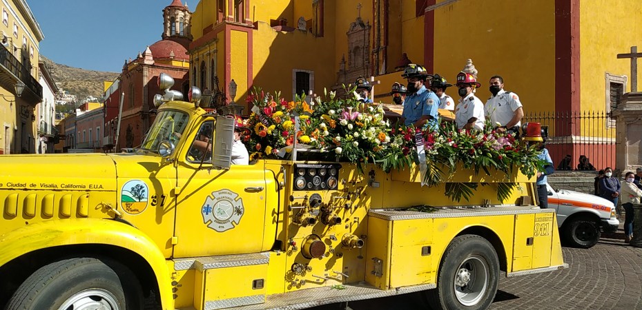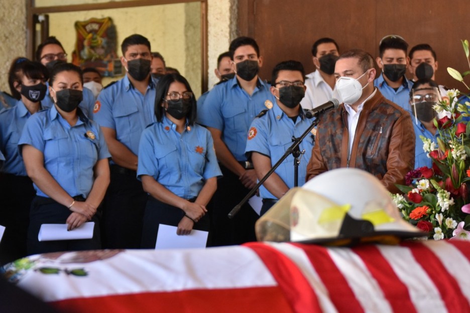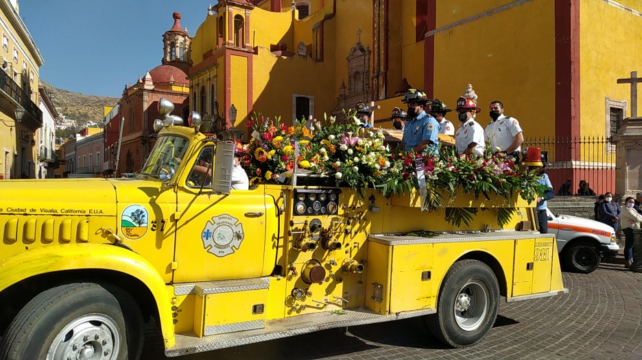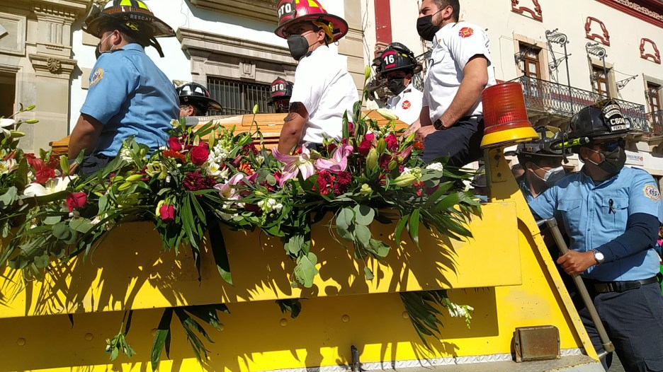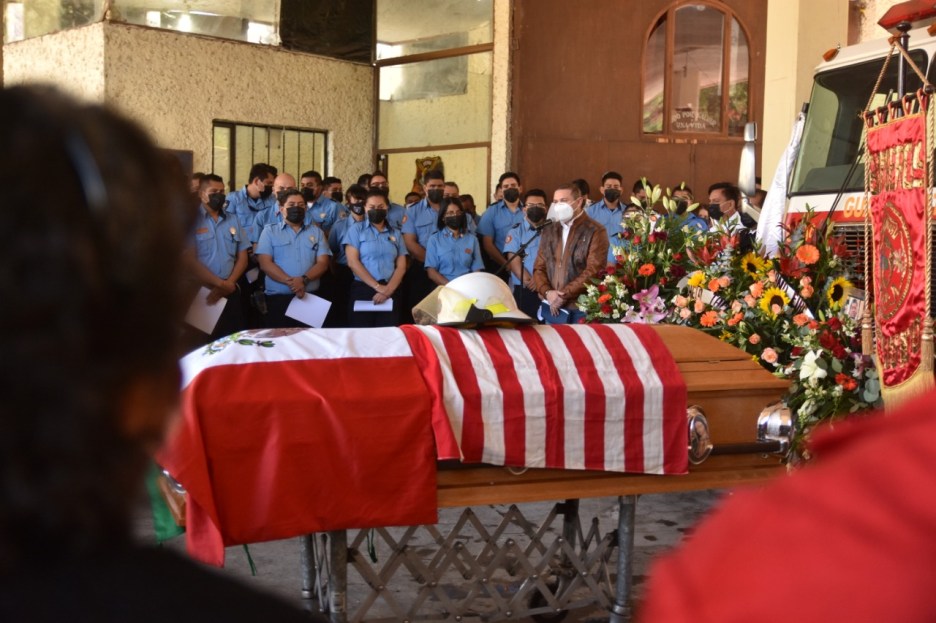 Guanajuato, Gto., .- Familiares, amigos, bomberos, paramédicos y autoridades municipales, le dieron el último adiós al Jefe del Heroico Cuerpo de Bomberos Voluntarios de Guanajuato, Mario Manuel Barrón Morales. Con una ceremonia de cuerpo presente en la Central de Bomberos de Pozuelos, el «Jefe Mario» realizó su último servicio a bordo de la unidad número 1, que lo llevó el féretro a la Basílica Colegiata de Nuestra Señora de Guanajuato. El Presidente Municipal de Guanajuato, Alejandro Navarro Saldaña, recordó a Mario Barrón Morales como una persona que entregó su vida a las de los demás, tanto como bombero y paramédico, como maestro. «Hoy perdemos un gran ciudadano. Hoy honranos la memoria del maestro Mario Barrón Morales», dijo Navarro Saldaña quien también recordó que en 2019 se le otorgó el reconocimiento de Guanajuatense Distinguido por su trayectoria de vida. Por su parte, el subcomandante de Bomberos, Daniel Barrera, aseguró que el recuerdo de Mario Barrón vivirá por siempre en la memoria de Guanajuato Capital.