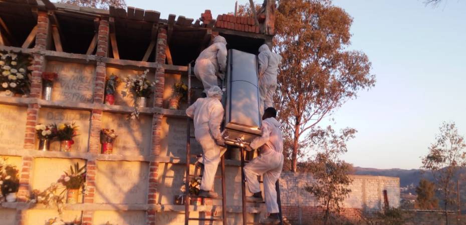 Guanajuato, Gto., .- El Escuadrón AntiCOVID de Guanajuato Capital realizó una revisión en los principales panteones municipales para corroborar la implementación de medidas preventivas en materia de salud. Entre las restricciones que prevalecen en estos lugares destaca el uso de cubrebocas, que no ingresen personas mayores de 60 años ni menores de edad, que en los cortejos no participen más de 10 personas y se tenga sana distancia, así como la restricción de que sólo asista una persona a los procesos de exhumación. La Dirección General de Servicios Públicos dio a conocer que tanto en los trámites de inhumacion como de exhumación en casos comprobados de coronavirus COVID-19, se toman medidas especiales con base en los lineamientos de las autoridades sanitarias. En Guanajuato Capital hay 13 panteones municipales de los cuales los más grandes son el de Santa Paula, Virgen de la Luz o panteón nuevo y el de la comunidad Santa Teresa, en los que se han reforzado las medidas de prevención desde el inicio de la pandemia, incluida la construcción de nuevas gavetas.