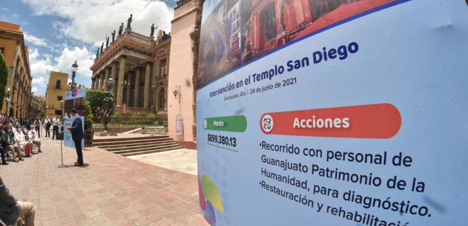 Los templos en los que el Gobernador inició los trabajos de restauración son la Basílica Colegiata de Nuestra Señora de Guanajuato, el templo San Diego y el templo de Pardo, tres ejemplos de la arquitectura religiosa colonial de Guanajuato que son patrimonio del mundo.