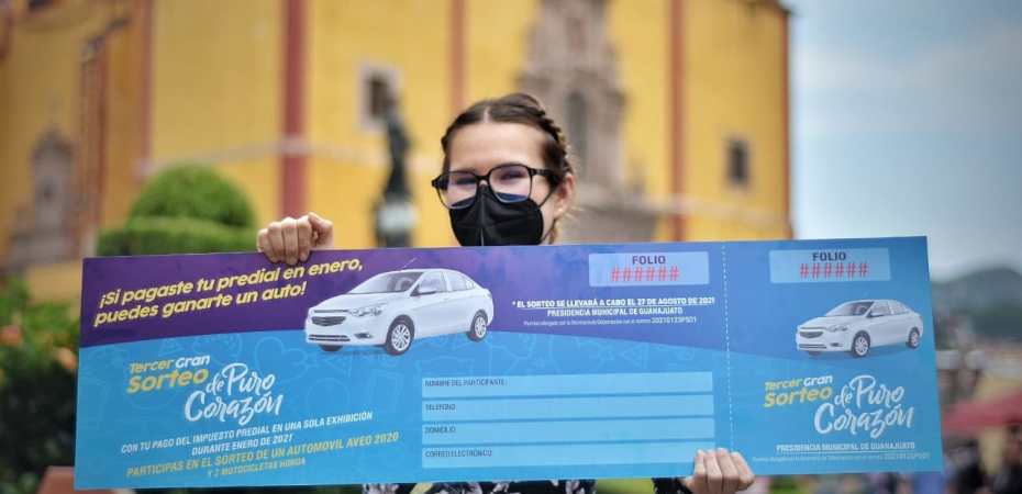 Guanajuato, Gto., – Este martes inicia la entrega de boletos para el tercer sorteo De Puro Corazón en el que participan las personas que pagaron el impuesto predial 2021 durante el mes de enero y que podrán ganar un automóvil y dos motocicletas. Es la tercera vez que la Presidencia Municipal de Guanajuato realiza este sorteo para premiar a las y los contribuyentes cumplidos en el pago del predial. Con los recursos recibidos a través de este impuesto el gobierno municipal desarrollo trabajos para seguridad, alumbrado, obra pública, bacheo y mantenimiento. La entrega de los boletos será de las 9:00 de la mañana a las 4:00 de la tarde entre lunes y viernes en las cajas municipales de Plaza Alaïa, de la Dirección General de Medio Ambiente y Ordenamiento Territorial del bulevar Guanajuato y de la Dirección de Ingresos, que está en el interior de la Presidencia Municipal. Para obtener los boletos se debe presentar el recibo original del predial 2021 y el cupón De Puro Corazón, que se entregaron a las y los contribuyentes al momento de su pago durante enero. En caso de ya no contar con el cupón se puede presentar únicamente el recibo original. Después se depositan los boletos en la urna que estará ubicada en la Presidencia Municipal del 3 al 26 de agosto de las 8:30 de la mañana a las 4:30 de la tarde, entre lunes y viernes. El sorteo se llevará a cabo el 27 de agosto a la 1:00 de la tarde en la Plaza de la Paz, con el permiso de la Secretaría de Gobernación número 20210125PS01.
