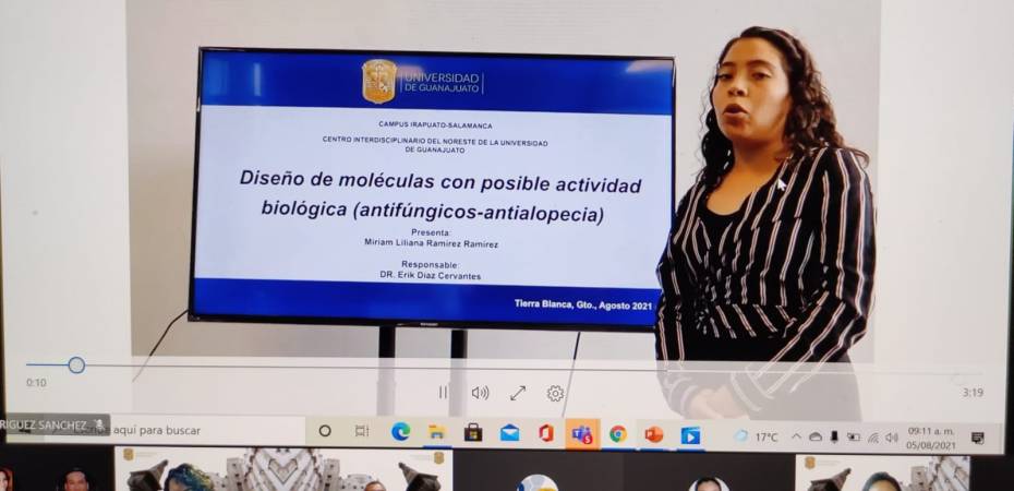 Por la sede Tierra Blanca, la alumna Miriam Liliana Ramírez Ramírez de la Licenciatura en Enfermería y Obstetricia, mostró los resultados del proyecto “Diseño de Moléculas con Posible Actividad Biológica Antifúngicos-Antialopecia”, cuyo encargado fue el Dr. Erik Díaz Cervantes. Para ella fue muy significativo su aprendizaje en el uso de softwares en el área de la salud.