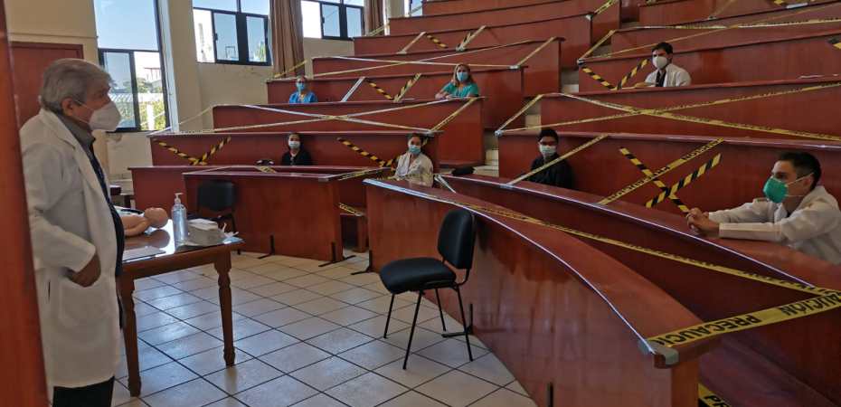 Guanajuato, Gto., – Con la finalidad de favorecer el desarrollo académico de la comunidad estudiantil que forma parte de la División de Ciencias de la Salud, durante este ciclo escolar las clases híbridas se enfocan en las Unidades de Aprendizaje (UDAS) de naturaleza práctica, como una medida para evitar la saturación en los espacios universitarios.