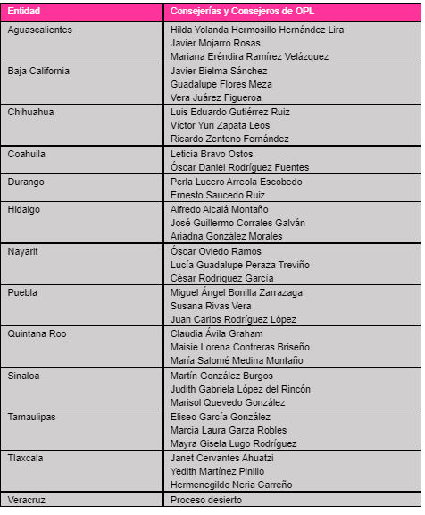 Con estas designaciones, agregó, se inicia la segunda generación de consejeras y consejeros en casi la totalidad de los OPL del país.