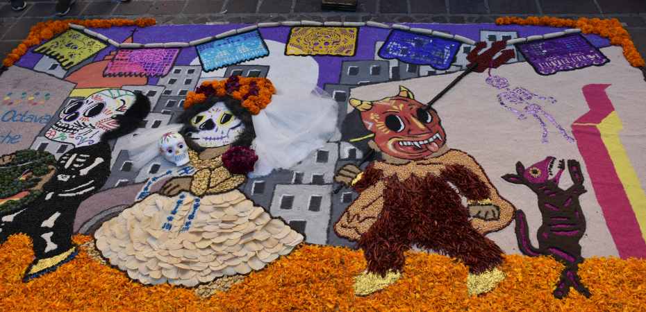 Guanajuato, Gto. Como parte de las actividades culturales que cada año se cabo en la ciudad de Guanajuato para conmemorar a los fieles difuntos, la asociación civil Manos Unidas de Guanajuato, organizó por XV ocasión la Muestra Internacional de Arte Efímero: El Tapete de la Muerte.