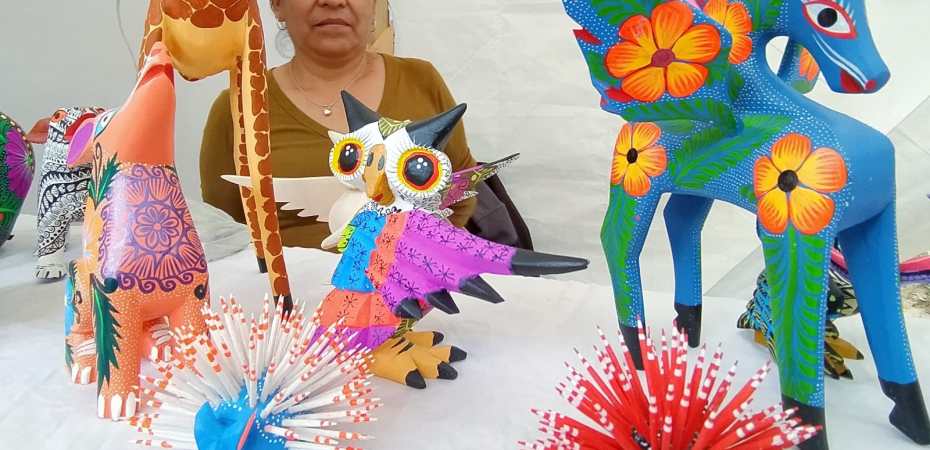 Hay alebrijes desde 80 pesos y se caracterizan por ser elementos decorativos únicos e irrepetibles, por su tallado, sus grecas, sus orlas y sus gariboles, lo cual empieza a configurarse desde que Lucila ve una rama de copal, su primera fuente de inspiración.