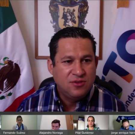 Se reúne e Gobernador, Diego Sinhue Rodríguez Vallejo con becarios que participan el Proyecto Inventiva del Programa “Talentos de Exportación”.