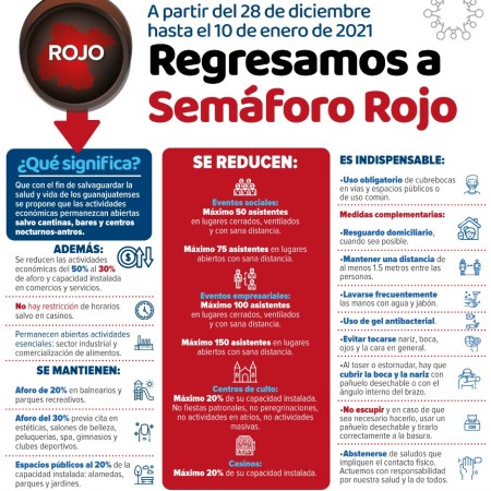 Cambiará el Semáforo Estatal para la Reactivación a Rojo del 28 de diciembre al 10 de enero