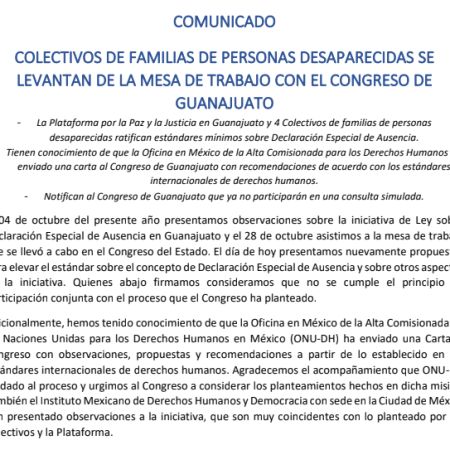 COLECTIVOS DE FAMILIAS DE PERSONAS DESAPARECIDAS SELEVANTAN DE LA MESA DE TRABAJO CON EL CONGRESO DE GUANAJUATO
