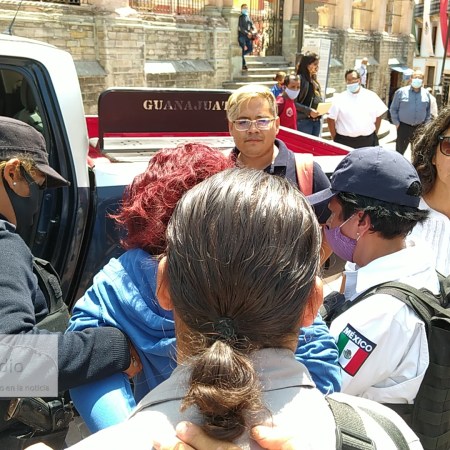 POLICIAS DETIENEN SOLO A UNA DE DOS MUJERES QUE PELEAN EN LA PLAZA DE LA PAZ, AUN Y CUANDO TESTIGOS LES EXIGIAN QUE SE LLEVARAN A AMBAS .