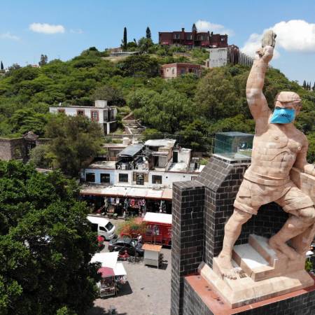 Instalan mega cubrebocas en El Pípila de Guanajuato