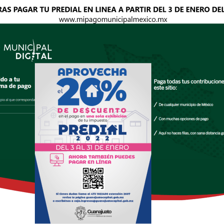 Confirma Presidencia Municipal de Guanajuato que ciudadanos podrán realizar el pago de Predial en línea, así como obtener un descuento del 20% si lo realizan durante el mes de Enero.