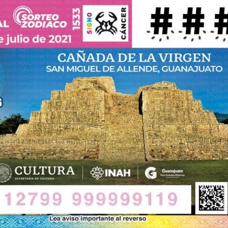 Billete de lotería lleva la suerte con la imagen de la pirámide de Cañada de la Virgen